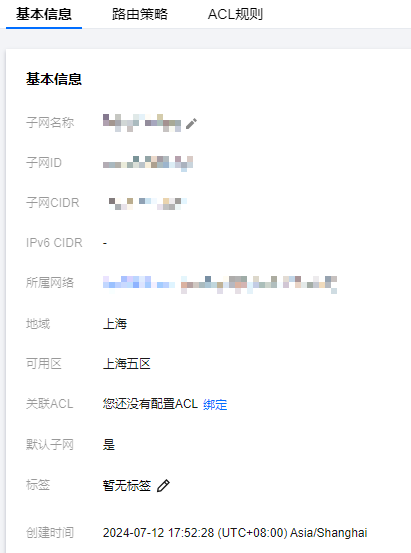 4. 单击子网 ID 可查看子网包含的资源详情,切换页签可查看路由策略、ACL 规则。