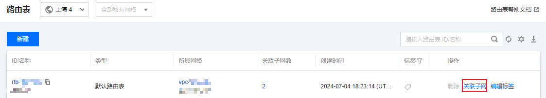 在列表中,找到需要关联子网的路由表,单击操作列的关联子网。