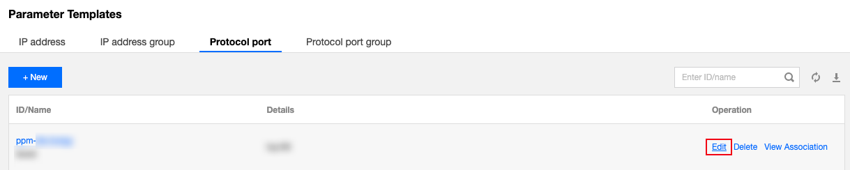 4. 在参数模板的“协议端口”页签,找到 ppm-4ty1ck3i 参数模板。