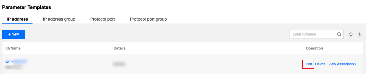 1. 在参数模板的“IP 地址”页签,找到 ipm-0ge3ob8e 参数模板。