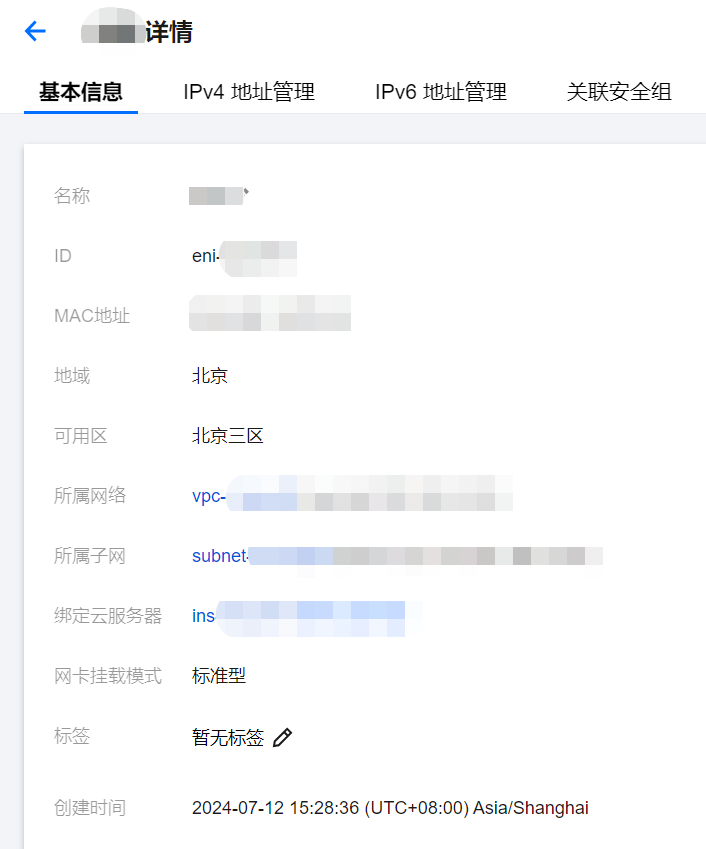 2. 在弹性网卡列表页中单击需要查看的实例 ID,即可进入详情页查看弹性网卡的相关信息。