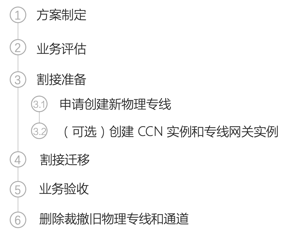 3. 用户在腾讯云专线 申请物理专线,腾讯云专线团队审核您创建的物理专线,大约1~3个工作日。 4. 腾讯云专线技术人员将在商定好的迁移窗口期内,协助您按照迁移方案进行线路迁移。