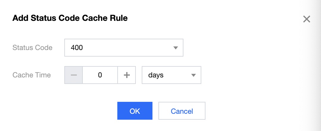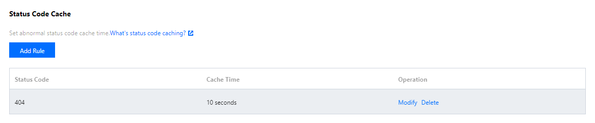 您可按需添加状态码缓存规则,单击【新增状态码缓存】: