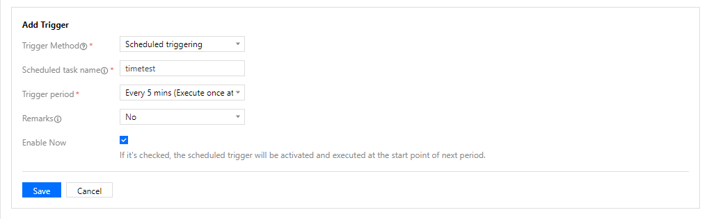 3、选择触发方式为【定时触发】,填写任务名称(随意),触发周期为【每5分钟】,并保存。