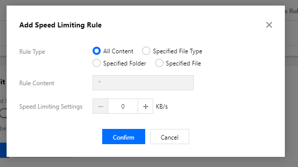 限速单位为 KB/s,需要填充为正整数,取值区间为1 - 1000000。