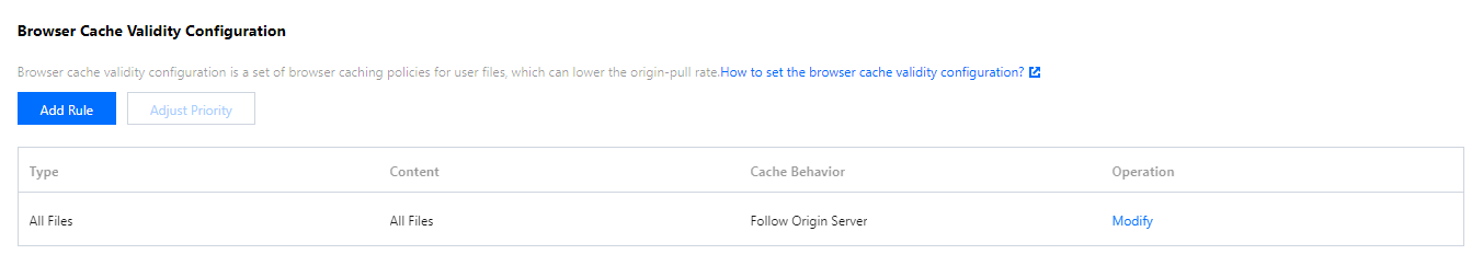 浏览器缓存过期配置支持自定义配置客户端浏览器的缓存策略,降低回源率。