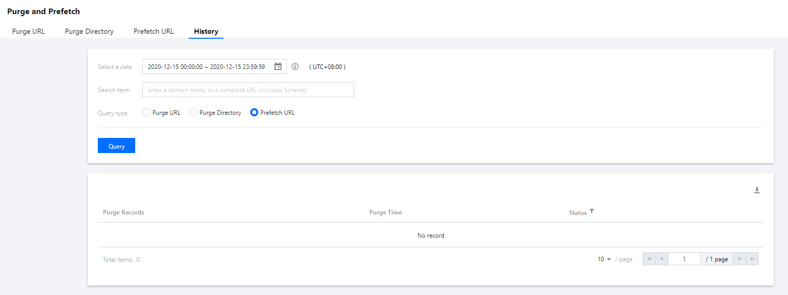 3. 单击【操作记录】,可指定时间周期、关键字进行预热任务查询,支持指定域名查询,或指定完整的 URL 进行查询: