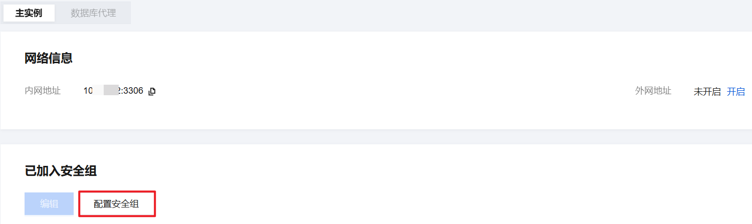 MySQL 控制台安全组页面设置的安全组规则,对内网地址和外网地址(若开启后),均统一生效。