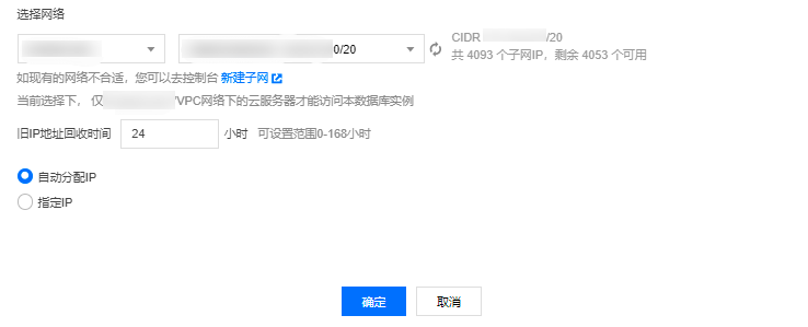 目的 VPC 只能选择 MySQL 实例所在地域的 VPC 网络,但不限制子网可用区的选择并可查看子网地址范围。