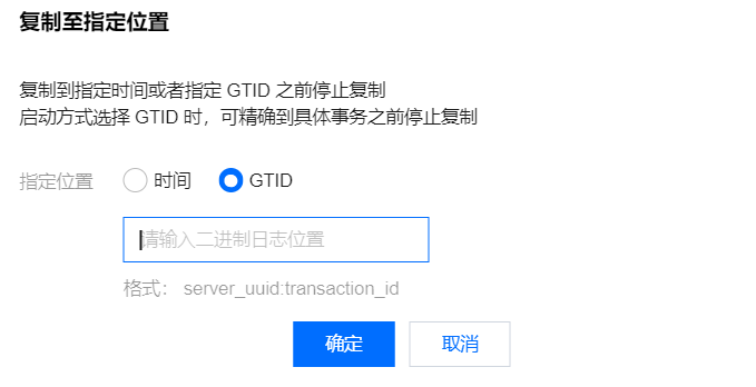 GTID:可选范围为只读实例未完成应用的二进制日志之后的所有日志。启动方式选择 GTID 时,可精确到具体事务之前停止复制。
