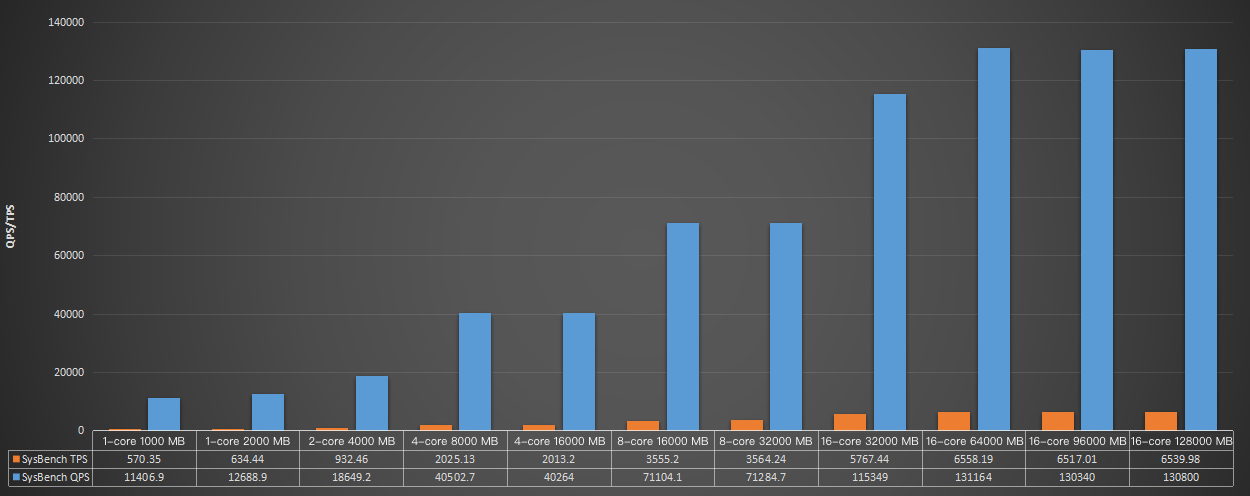 CPU(core) | 内存(MB) | 并发度 | 单表数据量 | 表总数 | SysBench TPS | SysBench QPS | avg_lat |