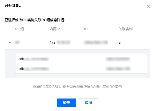 # generate truststore and keystore in codeString importCert = " -import "+" -alias mysqlServerCACert "+" -file " + ssl_ca +" -keystore truststore "+" -trustcacerts " +" -storepass password -noprompt ";String genKey = " -genkey -keyalg rsa " +" -alias mysqlClientCertificate -keystore keystore " +" -storepass password123 -keypass password " +" -dname CN=MS ";sun.security.tools.keytool.Main.main(importCert.trim().split("\\\\s+"));sun.security.tools.keytool.Main.main(genKey.trim().split("\\\\s+"));# use the generated keystore and truststoreSystem.setProperty("javax.net.ssl.keyStore","<下载的证书路径>");System.setProperty("javax.net.ssl.keyStorePassword","tencentdb");System.setProperty("javax.net.ssl.trustStore","<下载的证书路径>");System.setProperty("javax.net.ssl.trustStorePassword","tencentdb");url = String.format("jdbc:mysql://%s/%s?serverTimezone=UTC&useSSL=true", '<数据库访问地址>', '<指定访问数据库>');properties.setProperty("user", '<数据库访问用户名>');properties.setProperty("password", '<数据库访问密码>');conn = DriverManager.getConnection(url, properties);