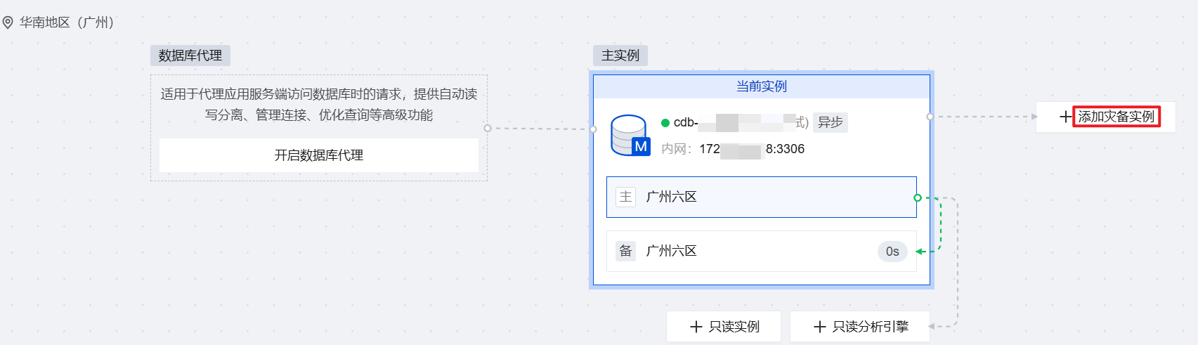 2. 在实例架构图中单击添加灾备实例,进入灾备实例购买页。
