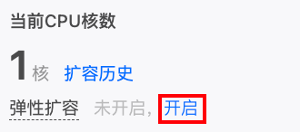 扩容核数 | 默认和当前实例规格的 CPU 核数一致,例如当前实例规格为6核24000MB,则扩容核数为6核,成功触发扩容后,实例 CPU 为12核。 |
