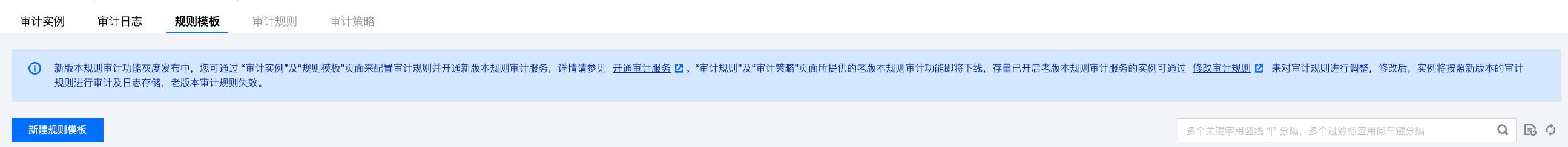 规则模板名称 | 仅支持数字、英文大小写字母、中文以及特殊字符 -_./()[]()+=::@,不能以数字开头,最多30个字符。 |