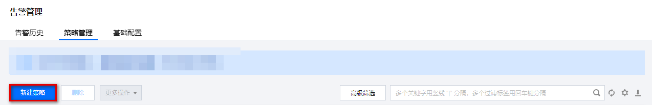 1. 登录 腾讯云可观测平台控制台,在左侧导航中,选择告警配置 > 告警策略 > 策略管理