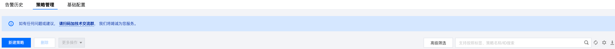 2. 在告警策略列表页,单击新建策略。