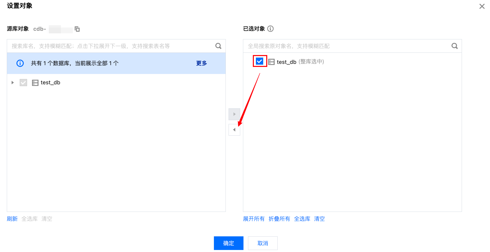 3. 在弹窗中,在右侧的同步对象下取消已经加载到只读分析引擎的对象,单击确定。