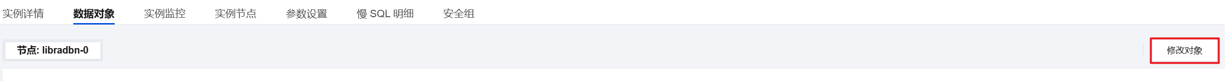 1. 登录 MySQL 控制台,在实例列表中,单击只读分析引擎的实例 ID 或操作列的管理,进入只读分析引擎的实例详情页面。 2. 选择数据对象页面,单击修改对象。