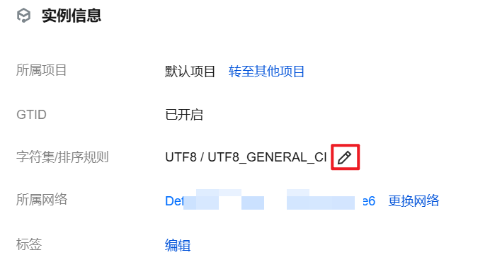 2. 在实例信息里找到字符集/排序规则,单击修改图标。