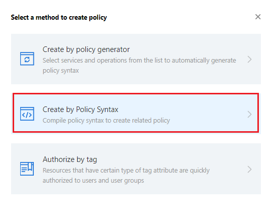 1. 进入 策略语法 配置页面,单击新建自定义策略。 第二步、关联子账号/协作者并验证