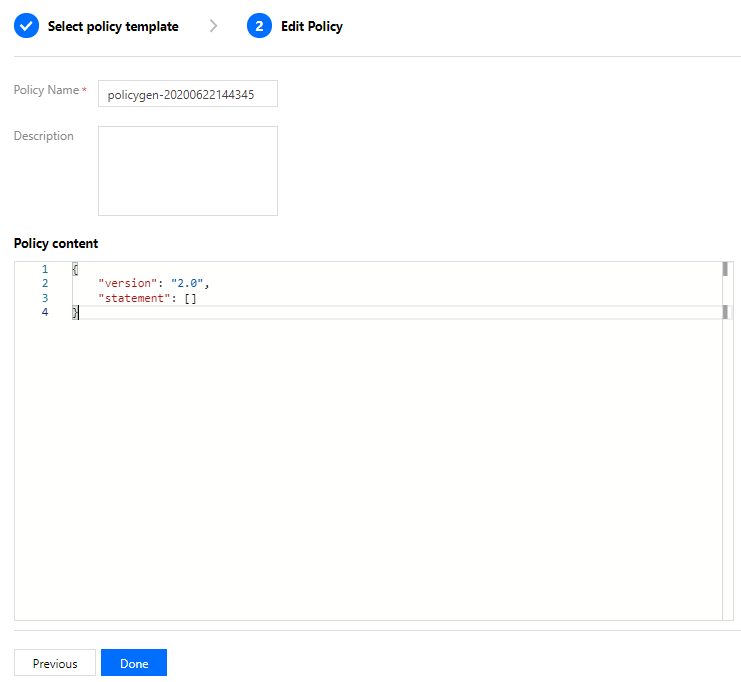 如果您觉得预设策略不能满足您所想要的要求,您也可以创建自定义策略。自定义的策略语法如下: