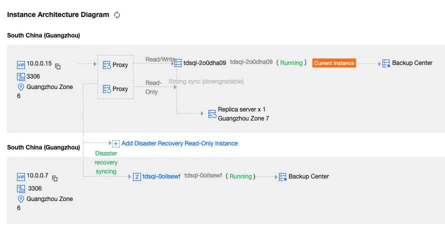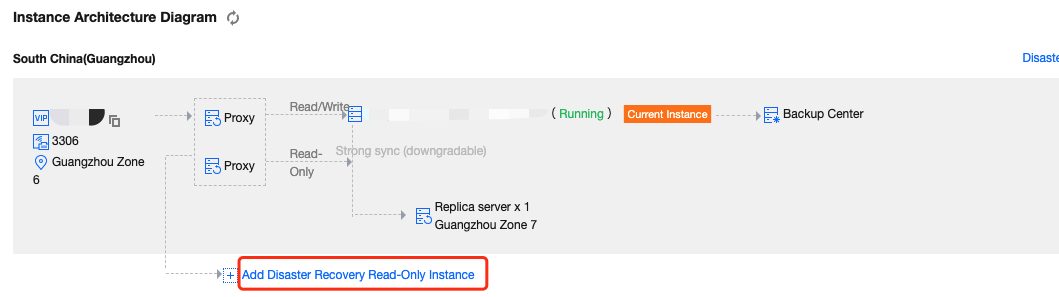 2. 在实例详情页的实例架构图中,单击添加灾备/只读实例,进入实例购买页。