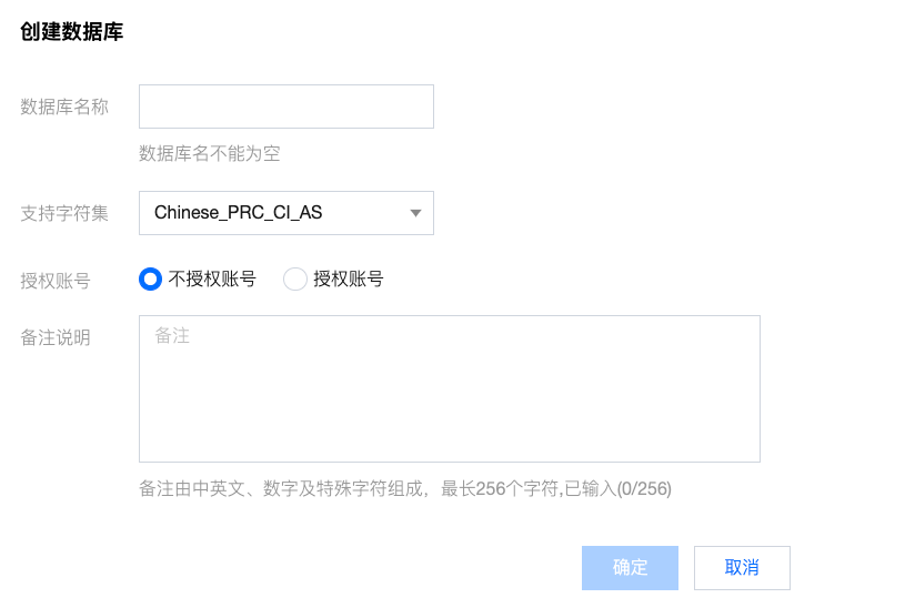 授权账号:可以针对已有账号对该库进行授权,如未创建账号,可参见 创建账号。 备注说明:输入备注说明,最多256个字符。