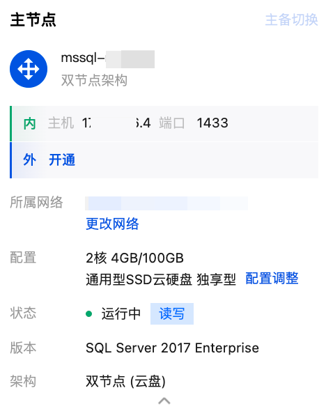 | ![]() | 备节点只读地址 | 若未开启备节点只读,可单击拓扑图中备节点只读地址上的“+”进行开通。 |