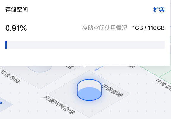 | ![]() | 只读实例存储 | 鼠标指向拓扑图中的只读实例存储,可查询只读实例存储空间的使用情况,单击扩容,可跳转至调整配置页面进行设置。 |