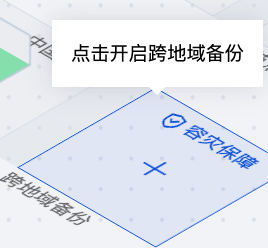 | ![]() | 跨地域备份 | 若未开启跨地域备份,可单击拓扑图中的跨地域备份上的“+”,开启跨地域备份。 若开启了跨地域备份,则鼠标指向拓扑图中的跨地域备份时,可查询跨地域备份的详细使用情况。 |