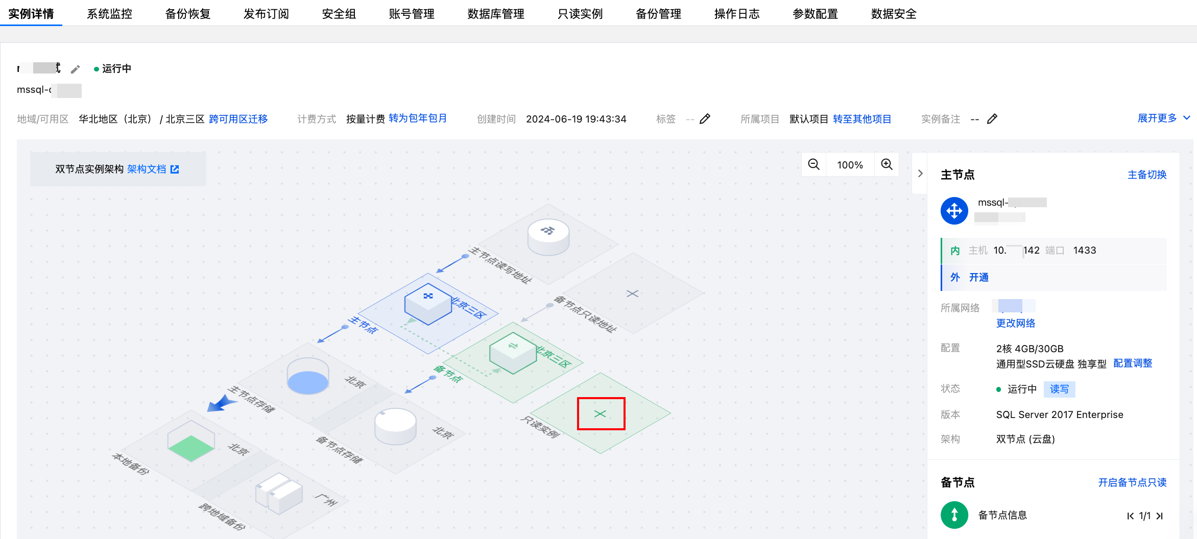 2. 在实例详情页,单击拓扑图中只读实例区域的“+”,进入购买页。