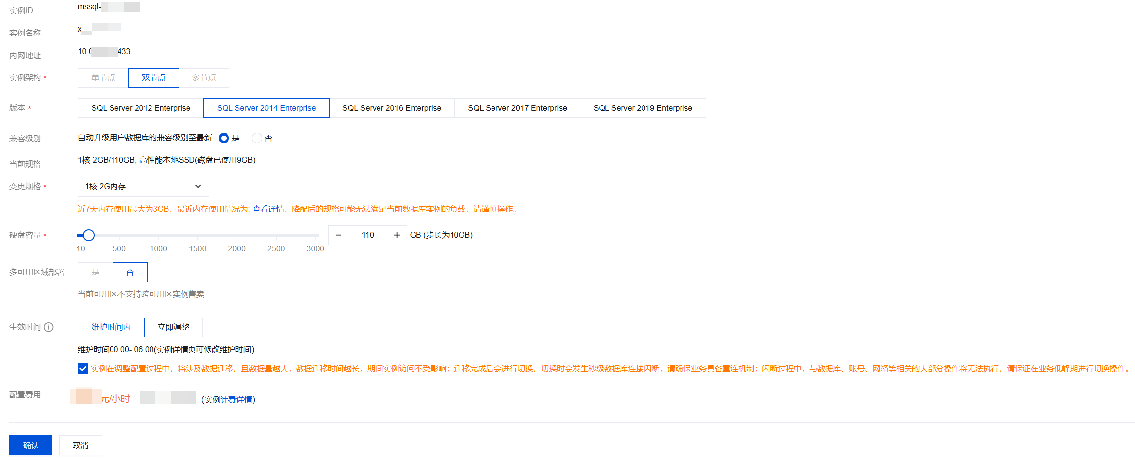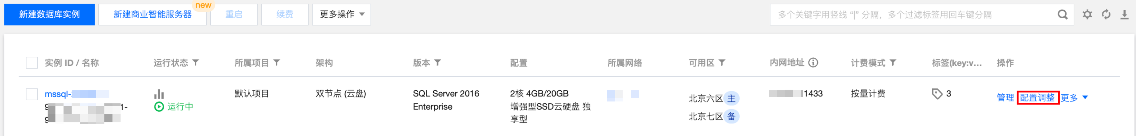 云数据库 SQL Server 实例及其所关联的实例处于正常状态下(运行中),并且当前没有任务执行时才能够发起调整配置操作。