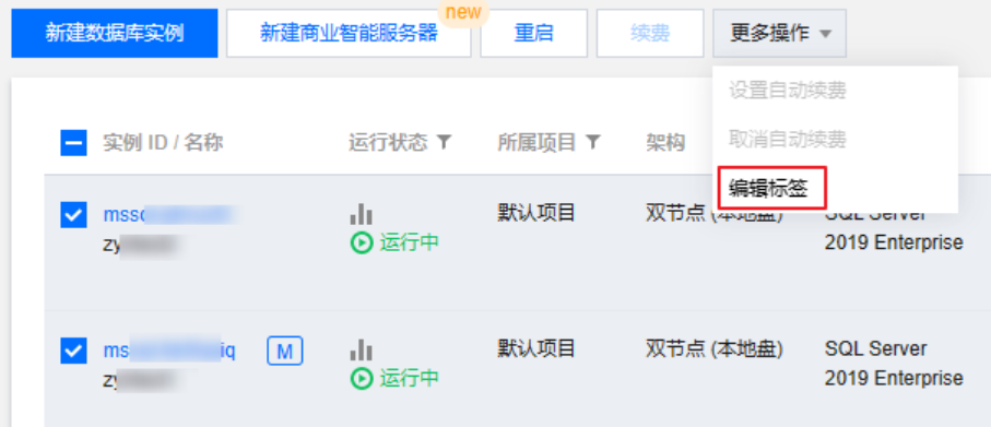 如需批量编辑标签,可勾选需要的实例,在上方选择更多操作 > 编辑标签。