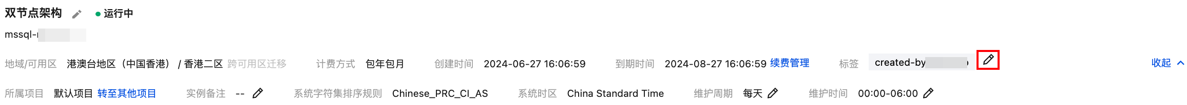 3. 在实例管理页 > 实例详情页的标签后单击编辑图标。