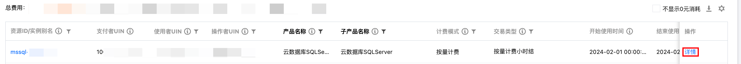 如需查看具体单个资源的账单明细,可单击其操作列的详情查看。
