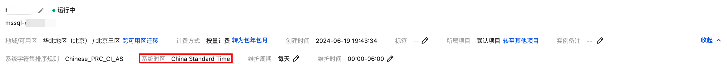 5. 您可以在实例详情页下,查询设置的系统时区。