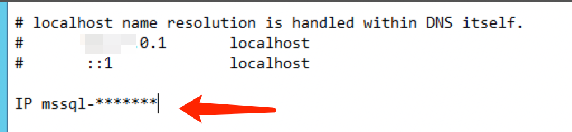 2. 在 hosts 文件最后一行增加 IP mssql-*******。