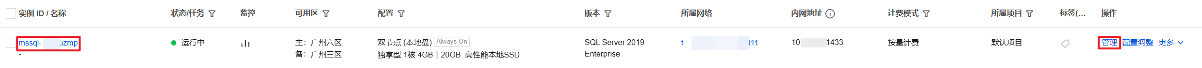 2. 在上方选择地域,找到目标实例,单击实例 ID 或在其操作列单击管理,进入实例管理页。