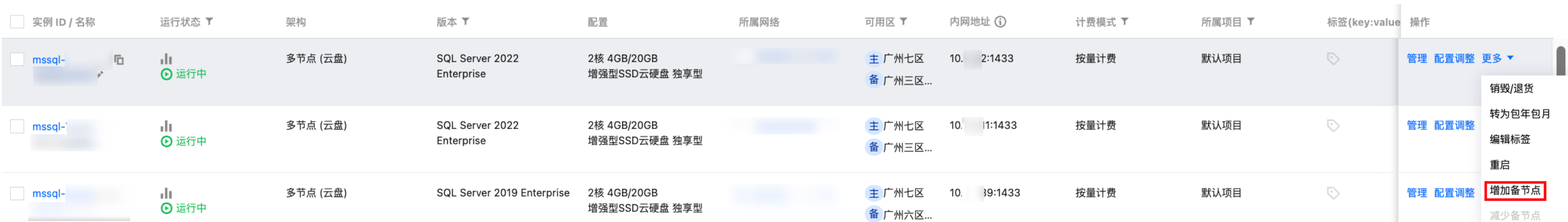 如果您购买的云数据库 SQL Server 实例架构为多节点,则支持在购买后根据实际业务需求,对多节点实例增加或减少备节点。本文为您介绍通过控制台增加或减少备节点的操作方法。