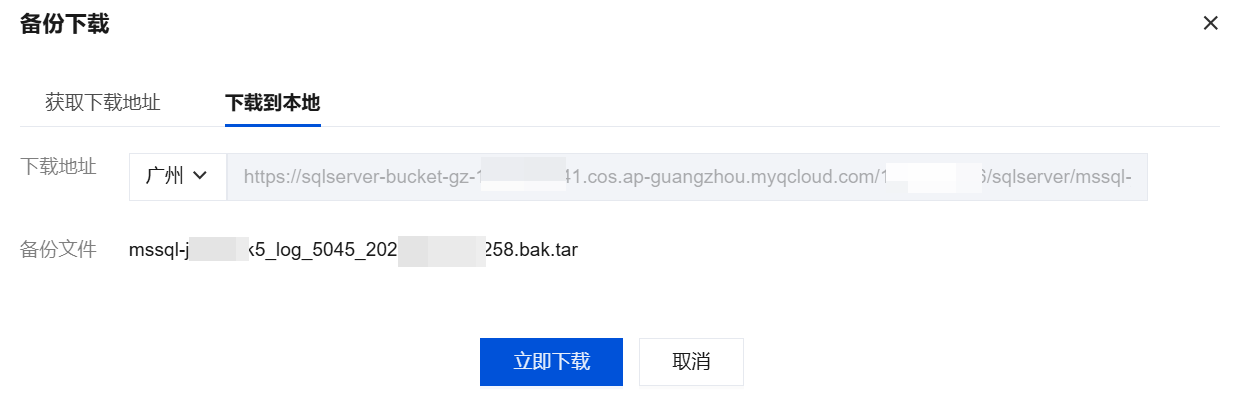 单击立即下载,即可将备份文件下载到本地。