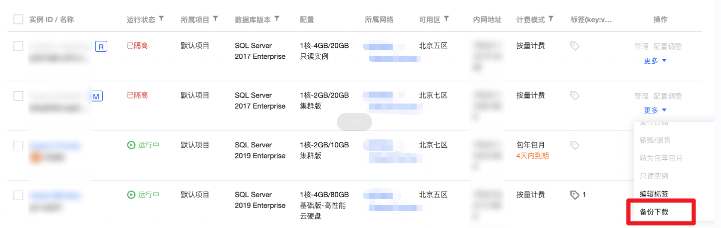 已隔离实例备份下载