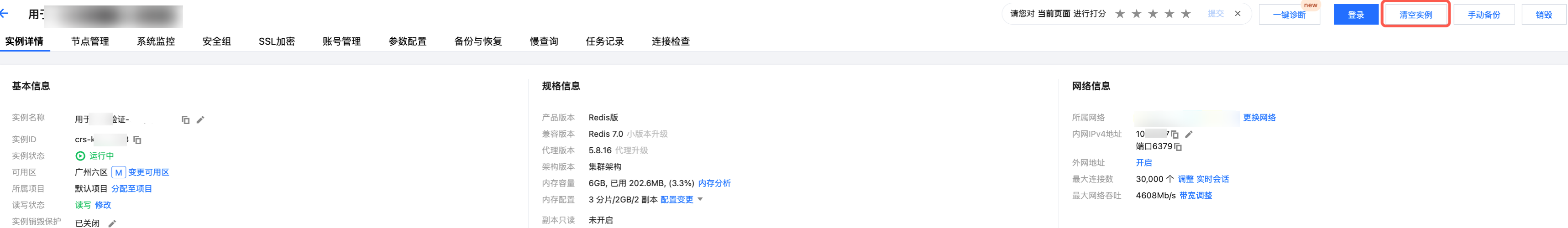 5. 在实例详情页面右上角,单击清空实例。