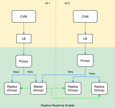 开启副本只读(读写分离)的实例,写请求将路由到主节点,读请求将路由到本可用区的副本节点,满足业务就近访问的诉求。