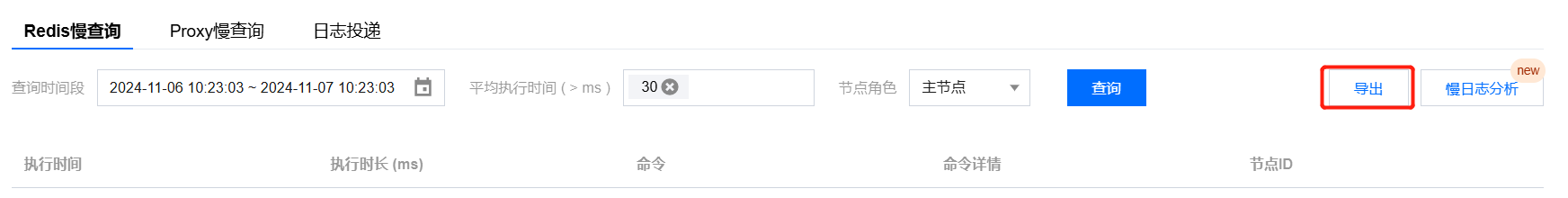 1. 在 Redis 慢查询或 Proxy 慢查询页面右上方,单击导出。