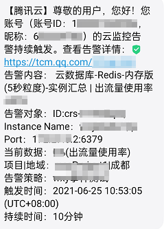 现象1:出流量指标达到上限。用户收到出流量限流触发告警的消息。