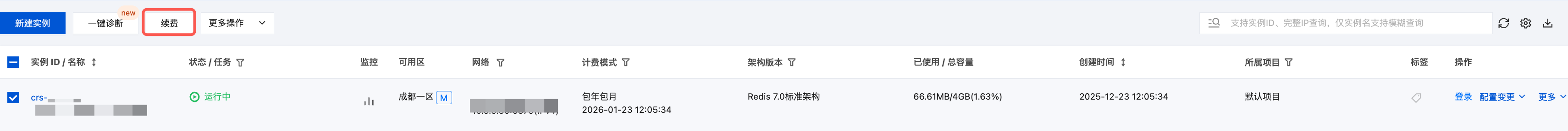 7. 返回 Redis 控制台,在实例列表的计费模式列,可确认实例到期时间已经更新为新的到期时间。