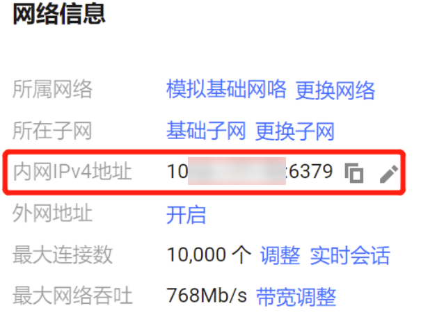 地址 | 请输入数据库实例的内网 IPv4 地址,请在控制台实例详情页面的网络信息区域获取。 |