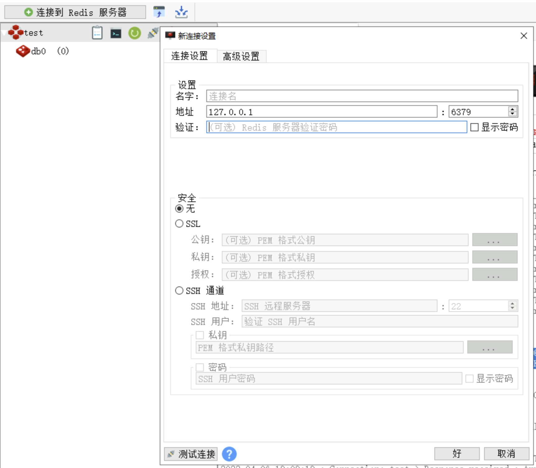 3. 打开 Redis 客户端,配置实例内网 IP 地址,单击测试连接,连接数据库实例。