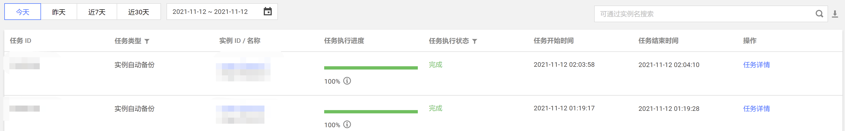 1. 在任务列表右上角的搜索框,您可以根据实例名,筛查需查看的任务。